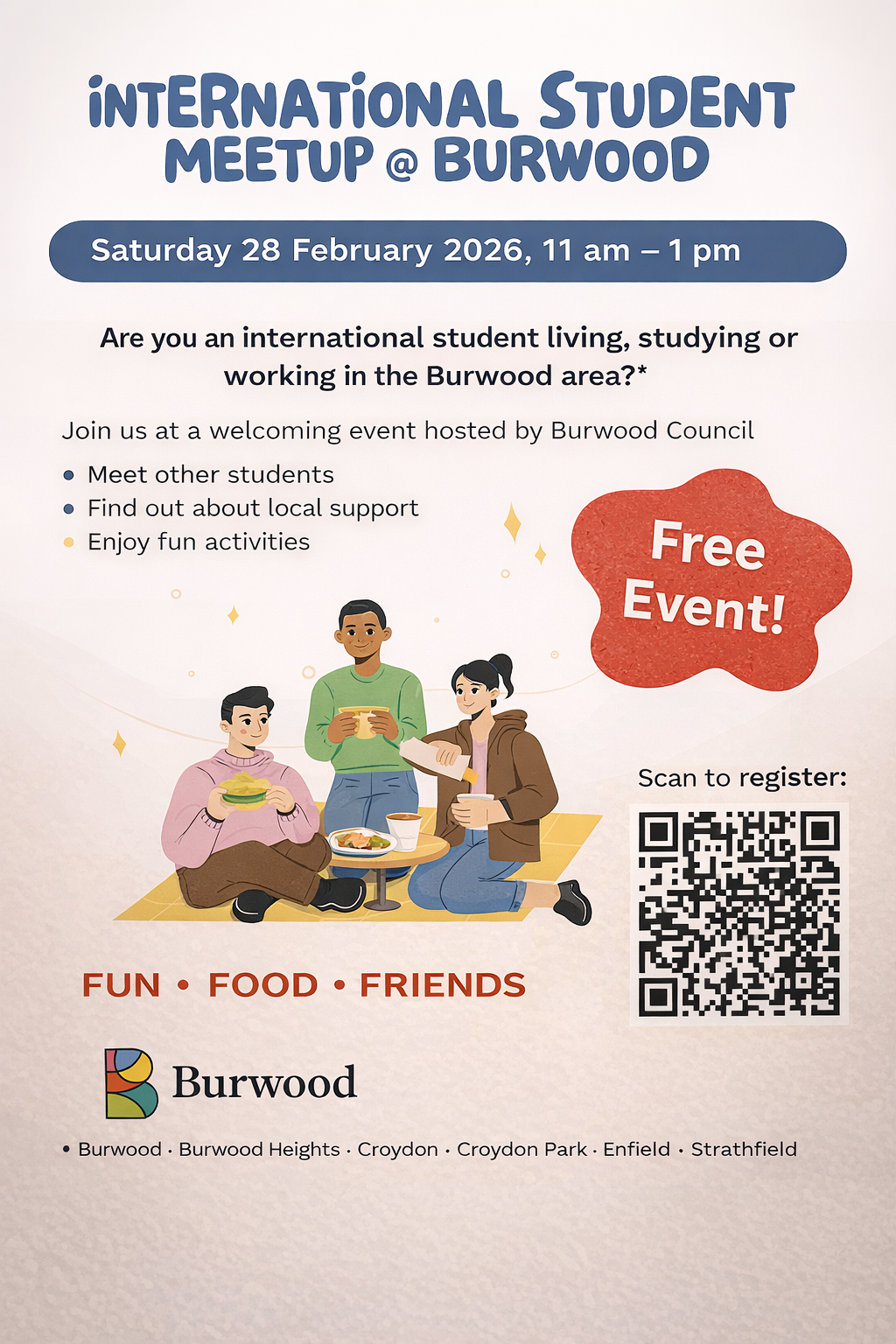 Burwood Council is hosting a welcoming community event for international students living, studying, or working in the Burwood area.